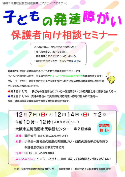 子どもの発達障がい保護者向け相談セミナー