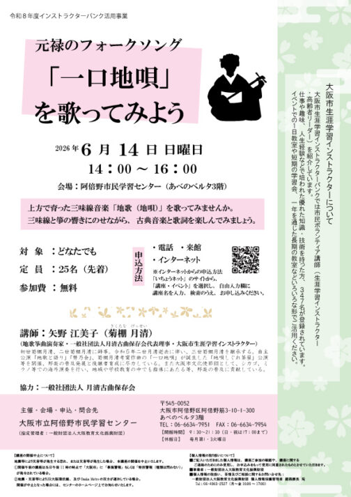 元禄のフォークソング「一口地唄」を歌ってみよう(大阪市生涯学習インストラクタ...
