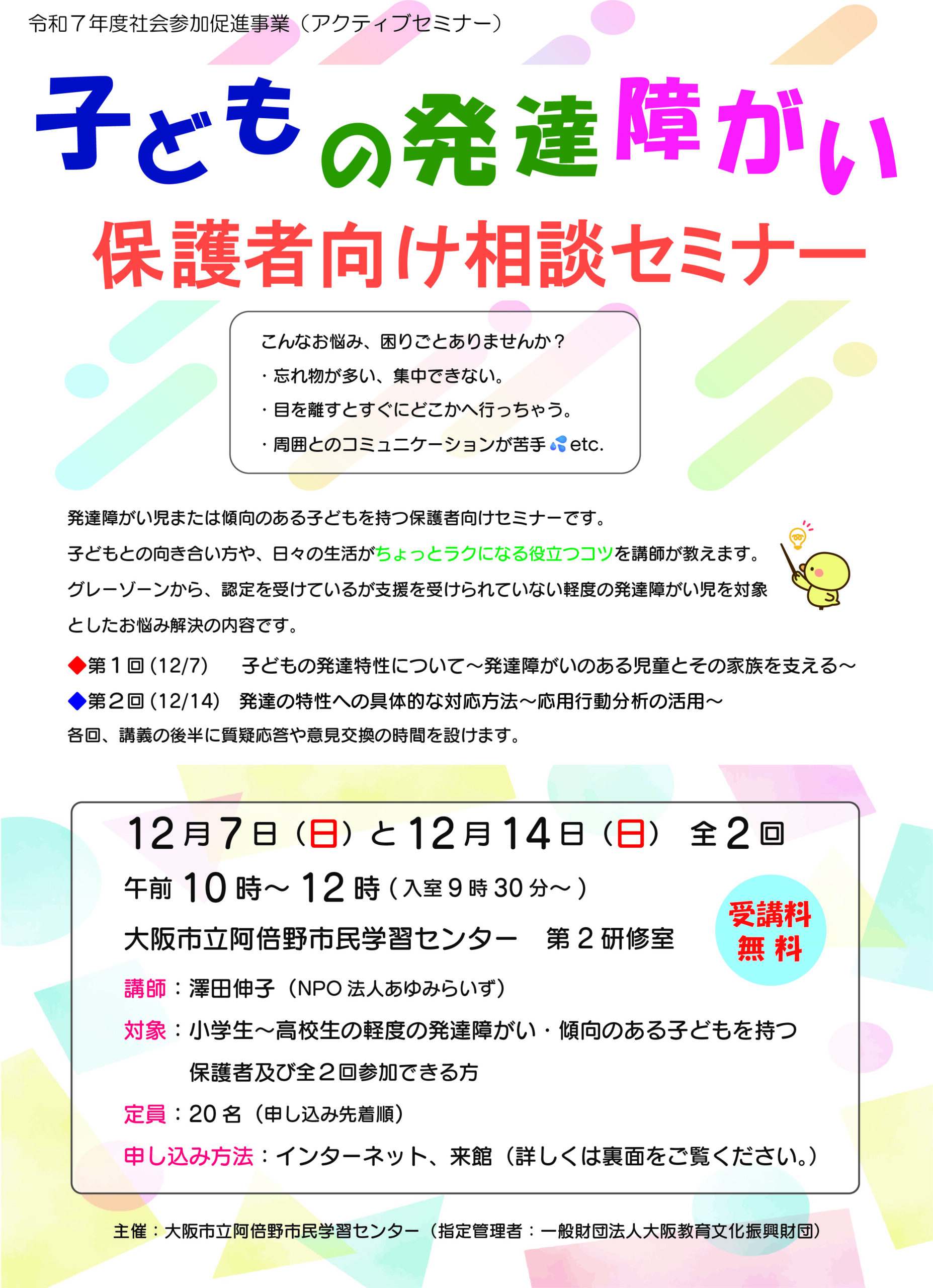 子どもの発達障がい保護者向け相談セミナー