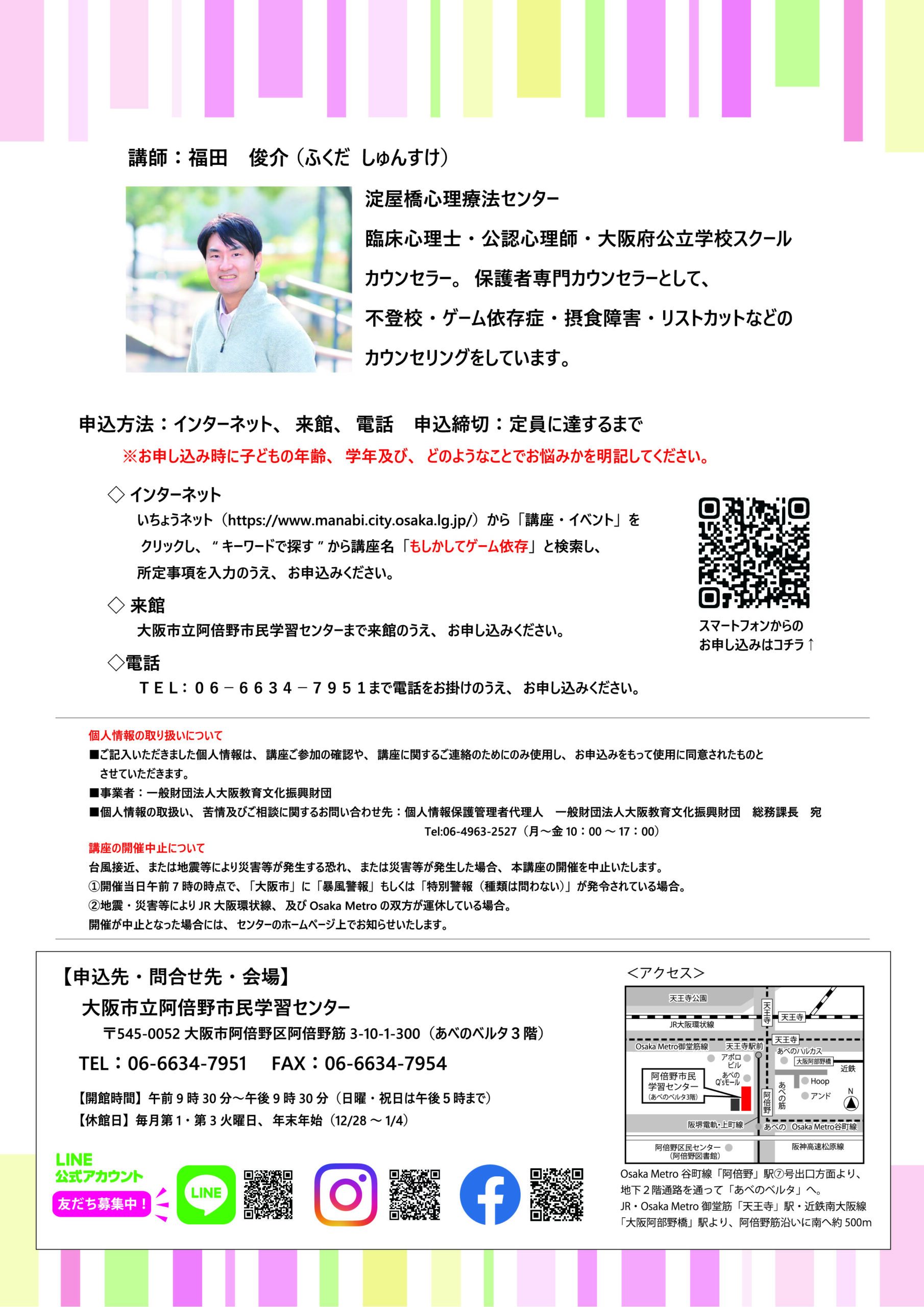 こちらからお申込みください。→「うちの子、もしかしてゲーム依存?」申し込み