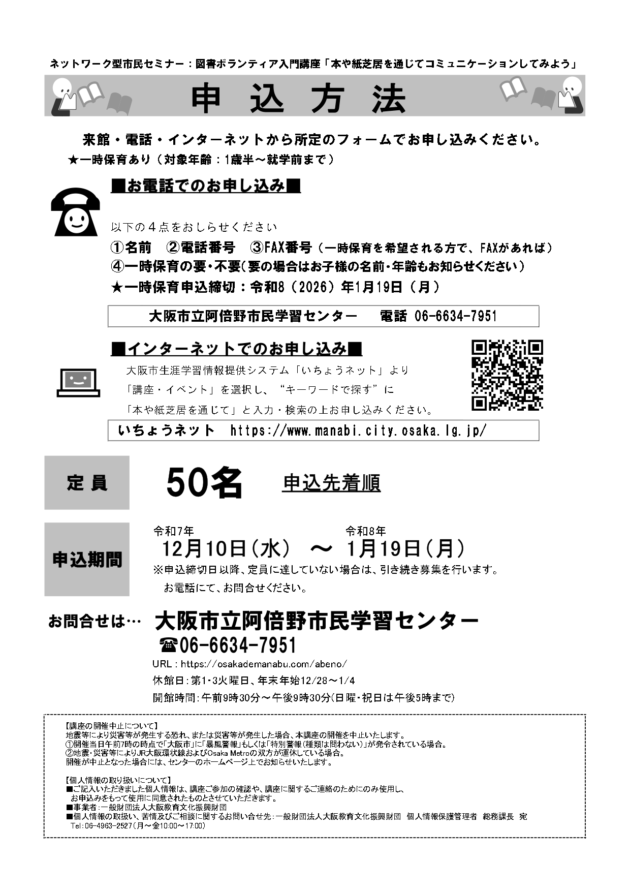 | 開催場所 | 大阪市立阿倍野市民学習センター |