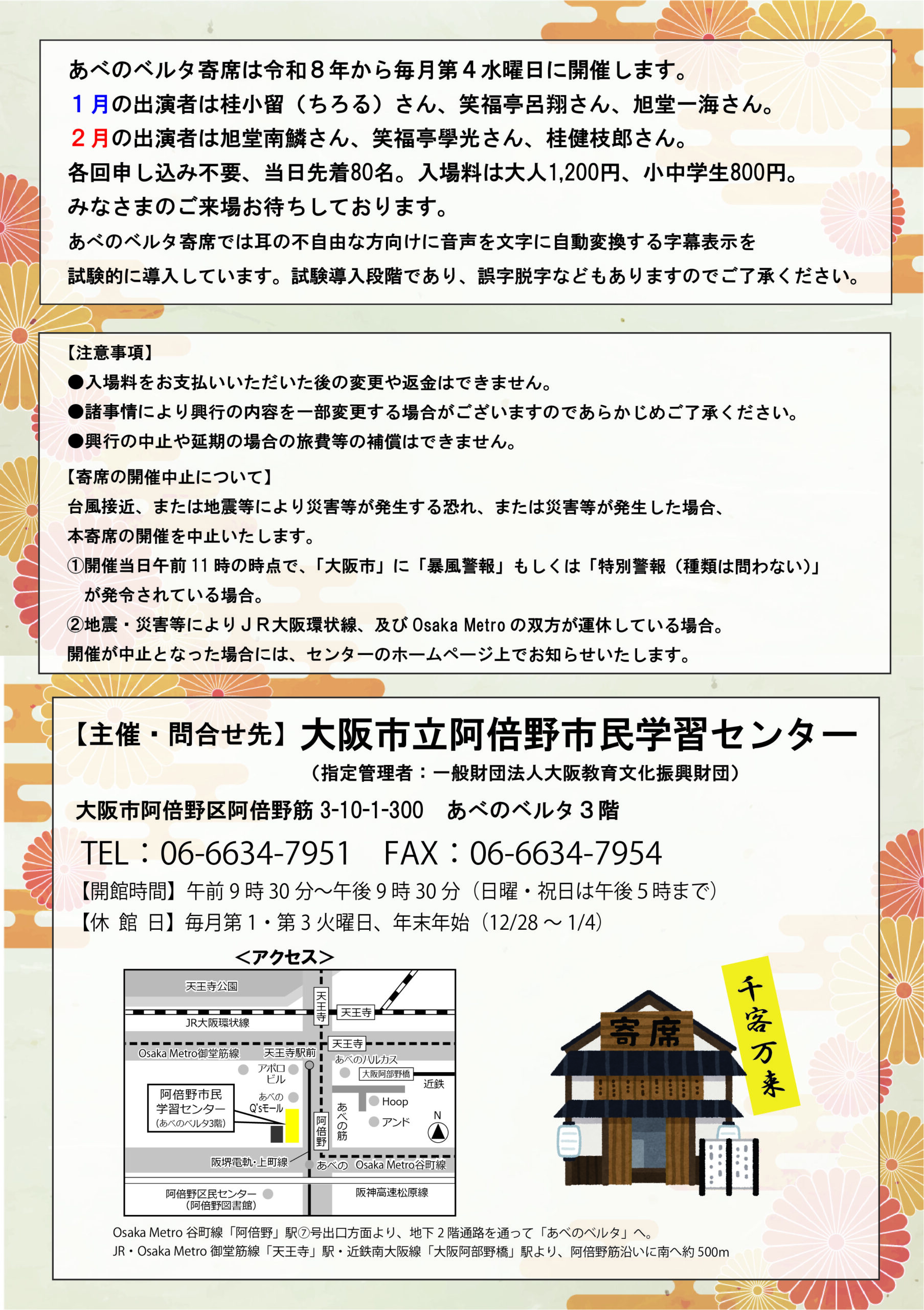 令和8年から毎月あべのベルタ寄席を開催します。