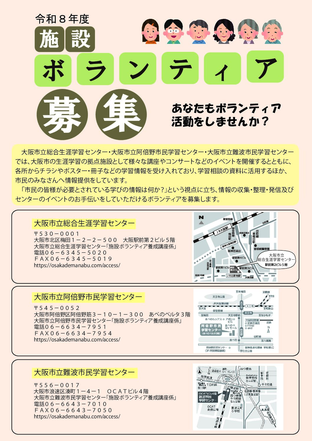 【阿倍野】施設ボランティアスタッフ募集