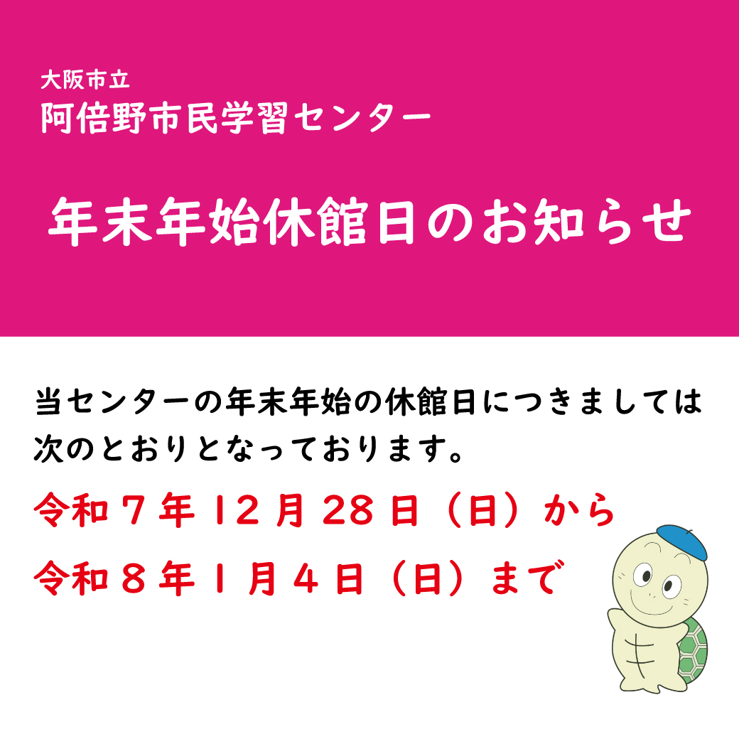 2025.12.15 (阿倍野)年末年始における休館日のお知らせ(12/28~1/4)