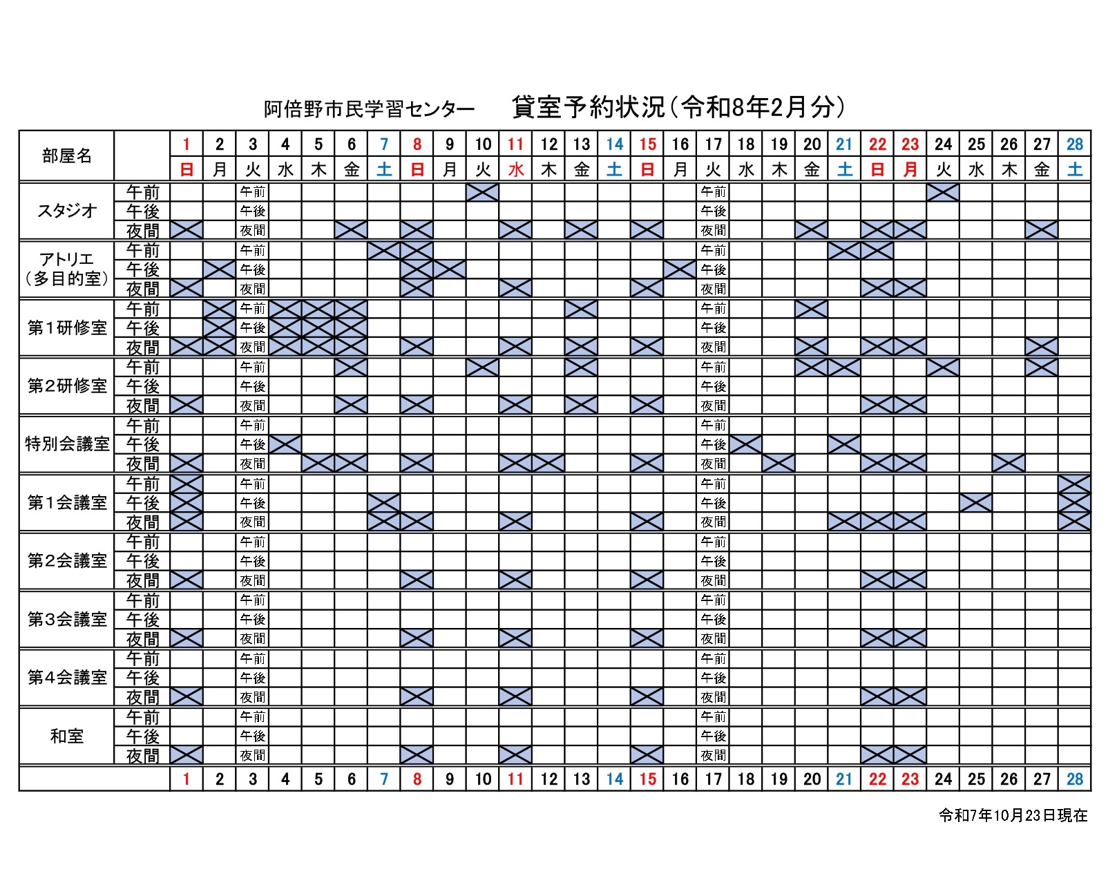 2025.10.24 (阿倍野)貸室抽選会のお知らせ【部屋2月/講堂・ギャラリー5月】