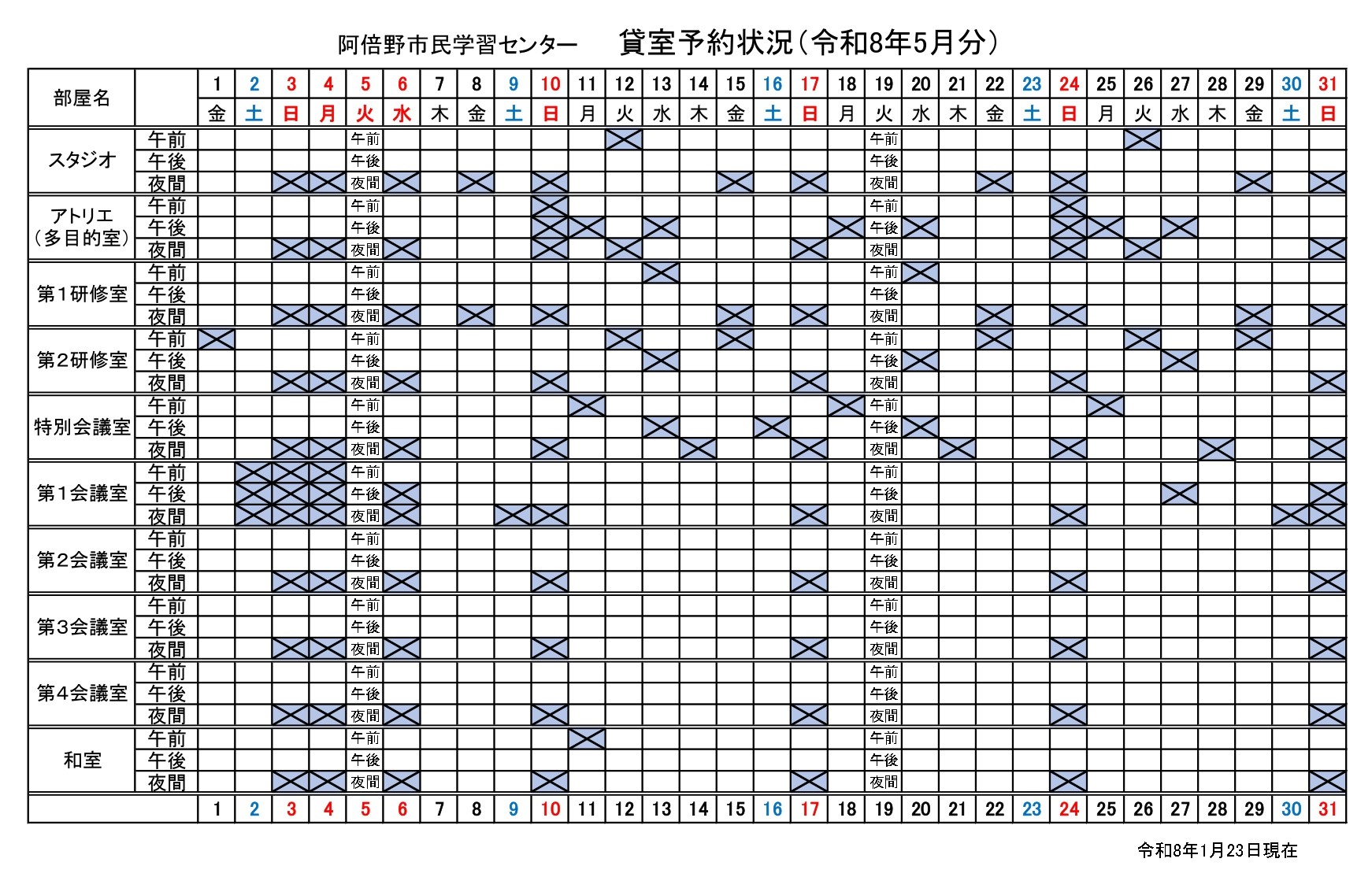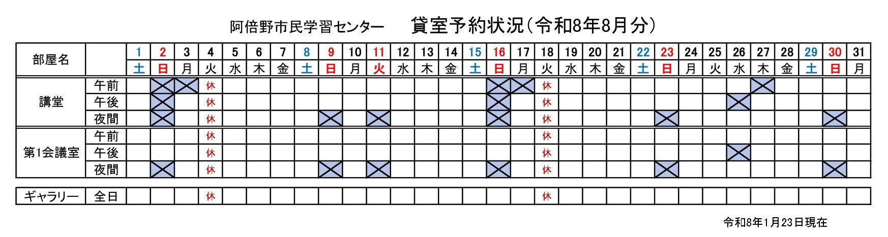 2026.01.23 (阿倍野)貸室抽選会のお知らせ【部屋5月/講堂・ギャラリー8月】