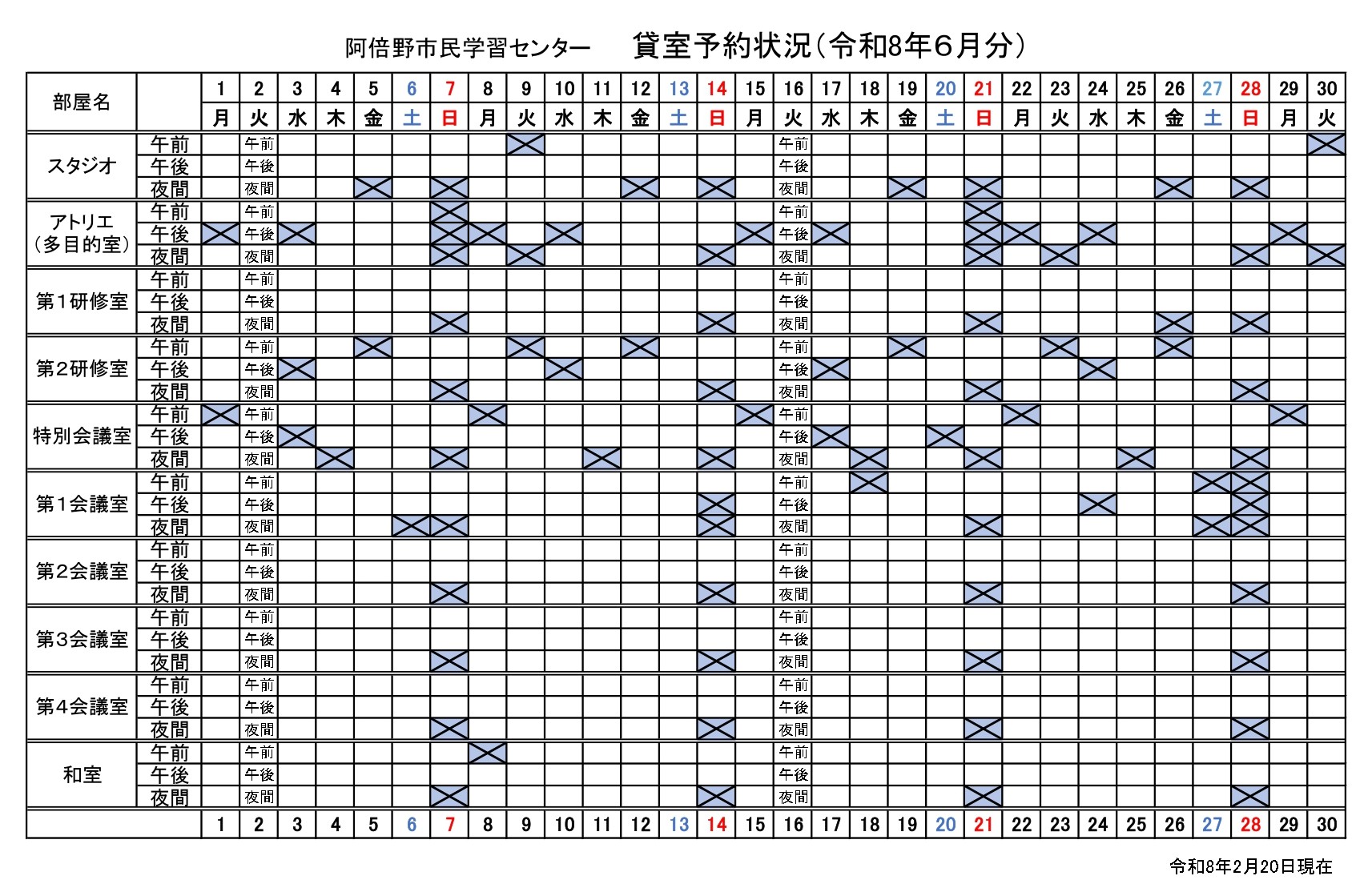 2026.02.20 (阿倍野)貸室抽選会のお知らせ【部屋6月/講堂・ギャラリー9月】