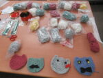 コットン糸とかぎ針、フェルトを使ってネコ型コースターを作りました。