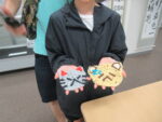 型紙に合わせて、はさみで花や虫などを作る切り絵体験をしました。