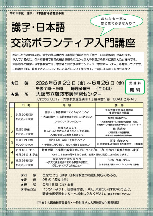 NAMBA Courses & Events難波市民学習センターの講座・イベント情報 講座・イベントのお申し込みの際は必ずご確認ください