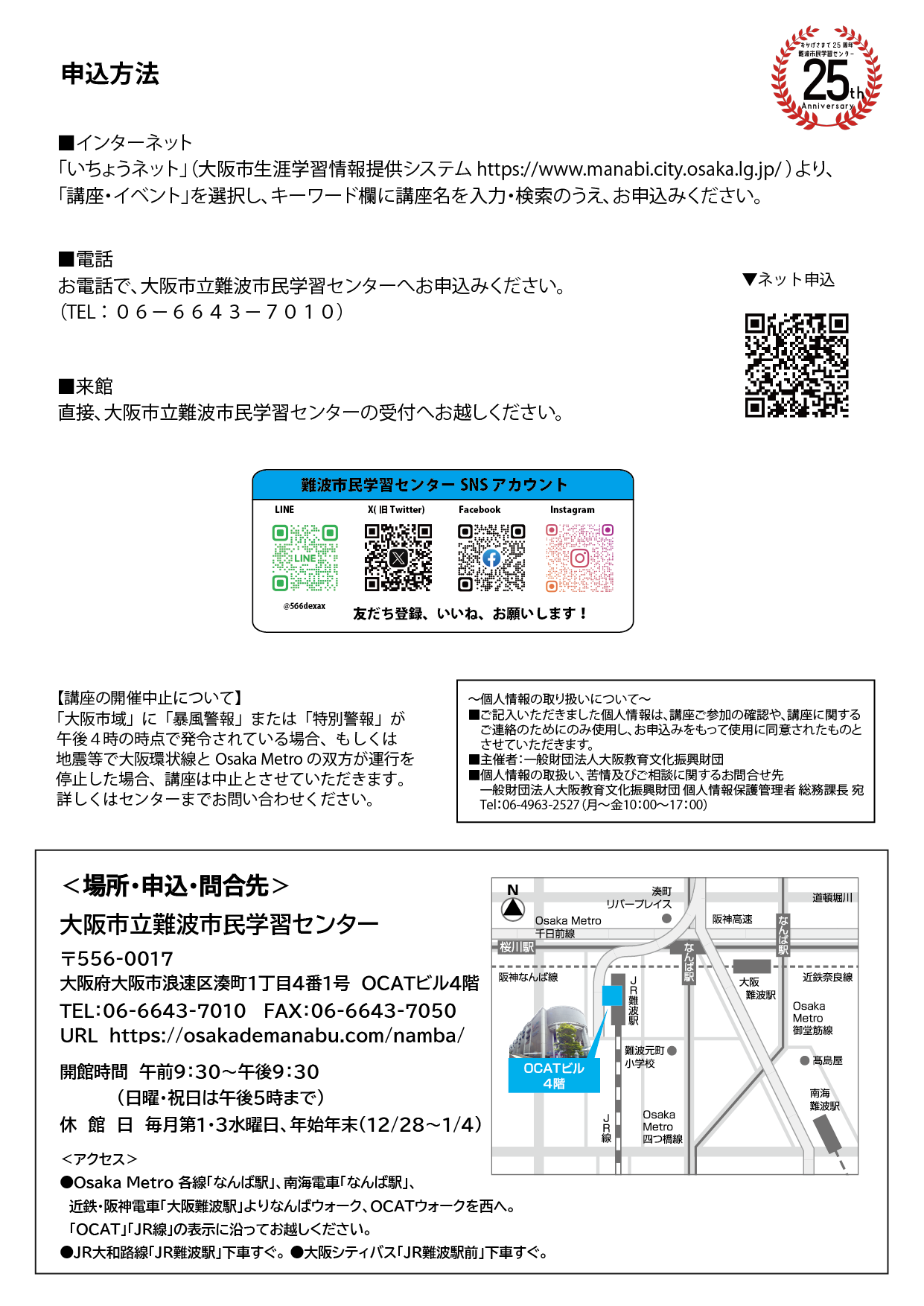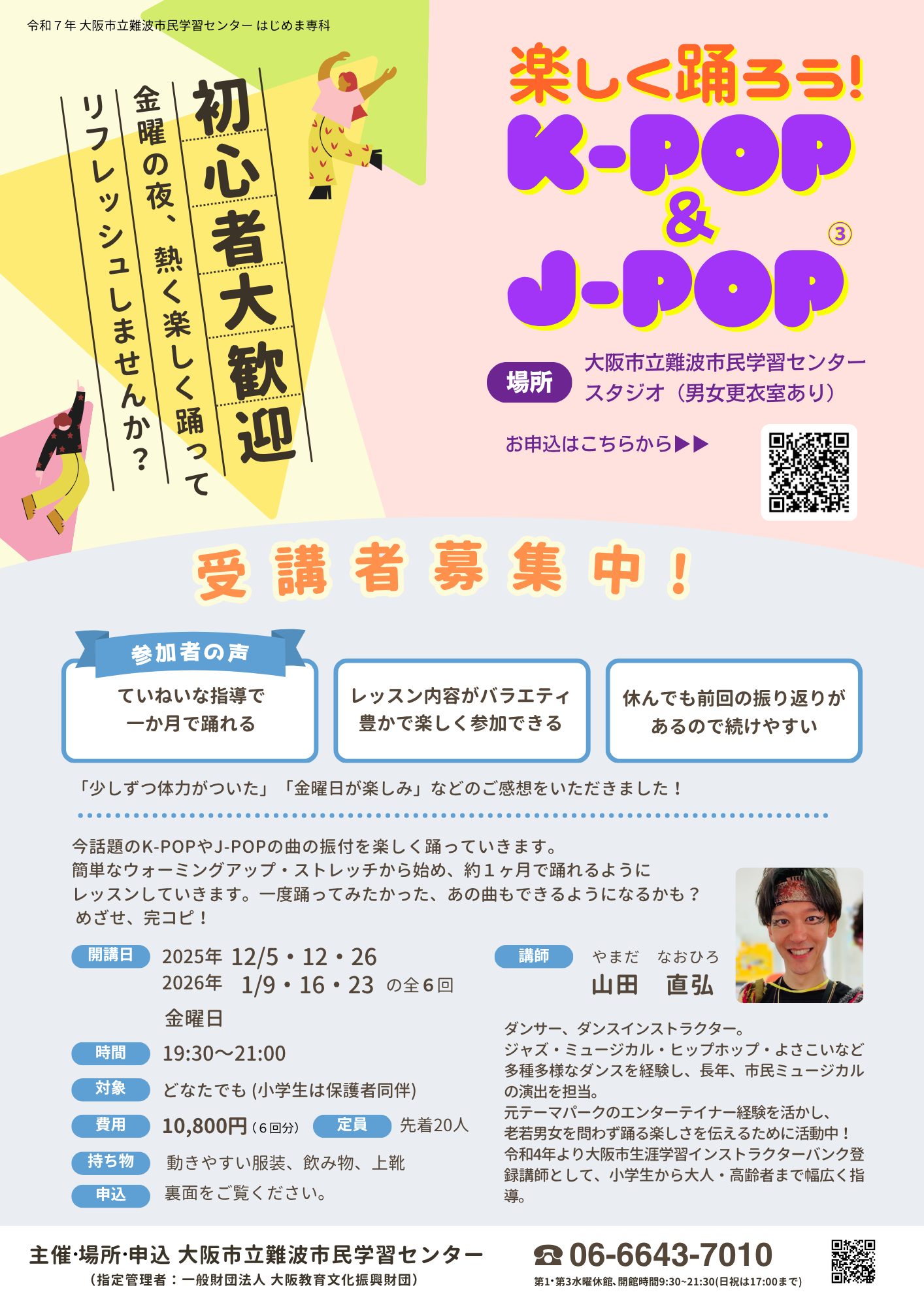 難波市民学習センター(06-6643-7010)まで、お申込みください。