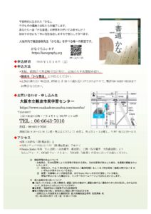 備考 持ち物:お手持ちの書道具(硯、固形墨、下敷き) 書道具の貸出しを希望される方は申込時にお伝えください。(一式500円/2回分)