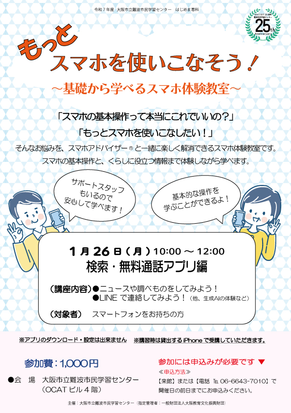 スマホの基本操作と、くらしに役立つ情報まで体験しながら一緒に学びませんか?