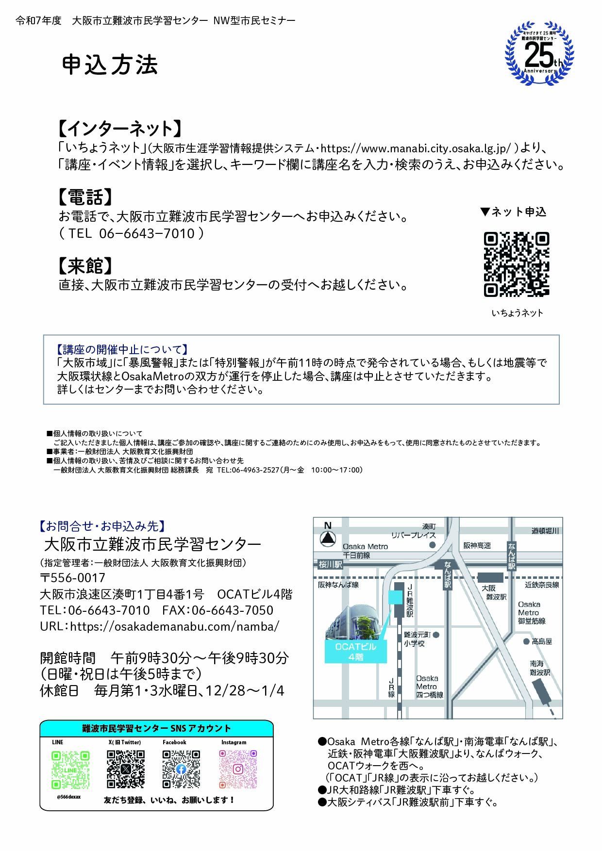 ■電話 難波市民学習センター(06-6643-7010)まで、お申込みください。