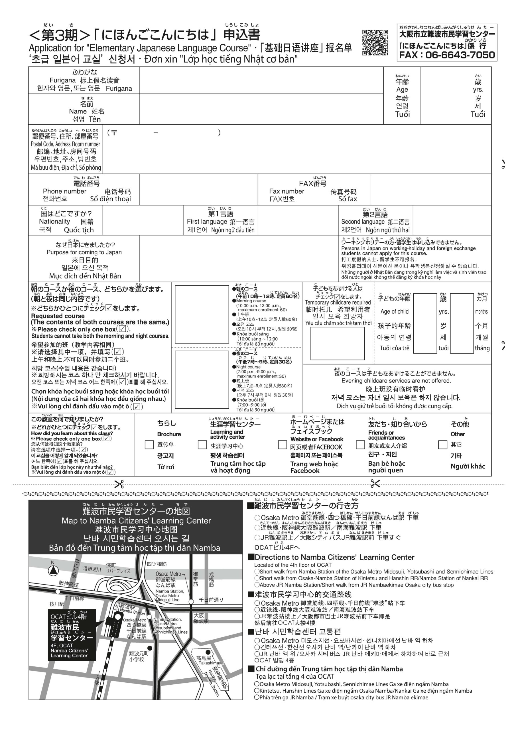 おおさかしには もじのよみかきや にほんごの かいわを べんきょうできる きょうしつが あります。