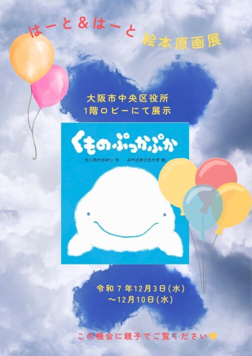 はーと&はーと絵本「くものぷっかぷか」の原画が中央区役所1階ロビーで展示され...