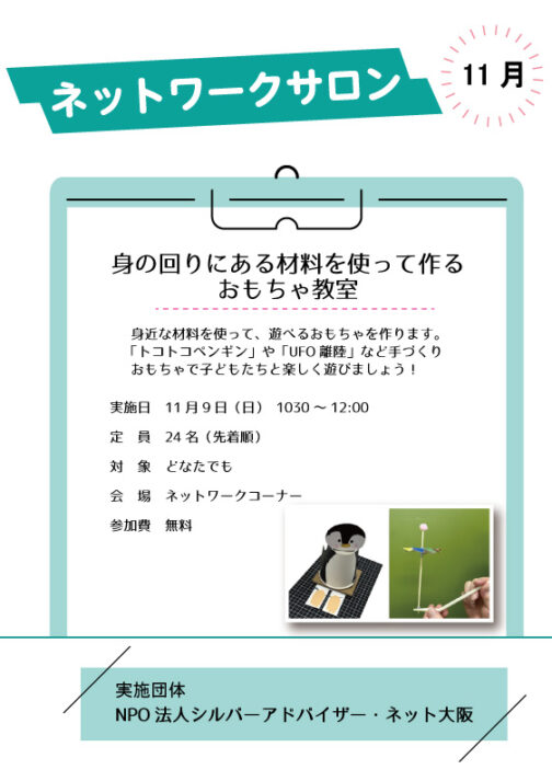 ネットワークサロン「身の回りにある材料を使って作るおもちゃ教室」
