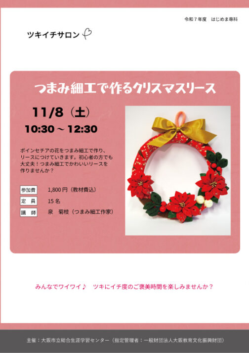 ツキイチサロン「つまみ細工で作るクリスマスリース」