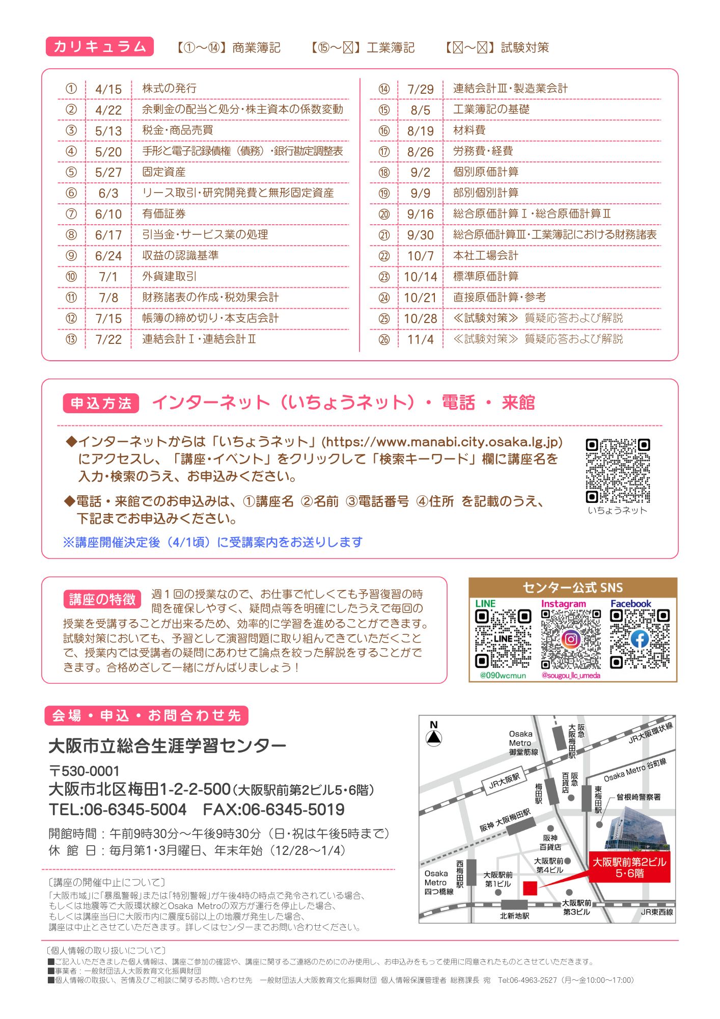 | 対象 | 日商簿記検定試験3級取得者または同等の知識をお持ちの方で、予習復習の学習時間を確保できる方 |