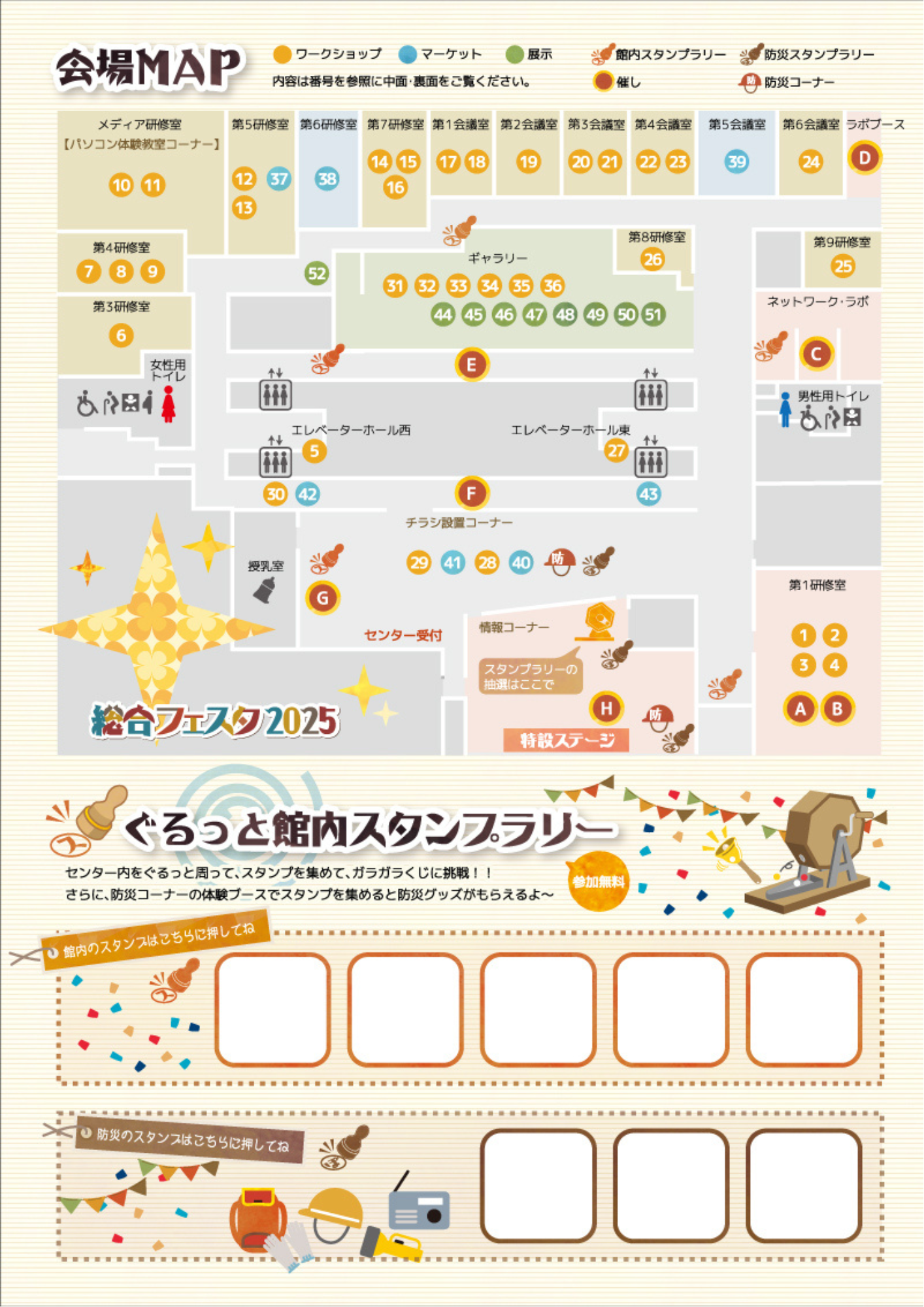 活動内容の発表、体験教室や講座、ステージ、フリーマーケットなど、大人も子どもも楽しめる催しが盛りだくさん!ご家族で、お友達同士で、みんな一緒に遊びに来てくださいね♪