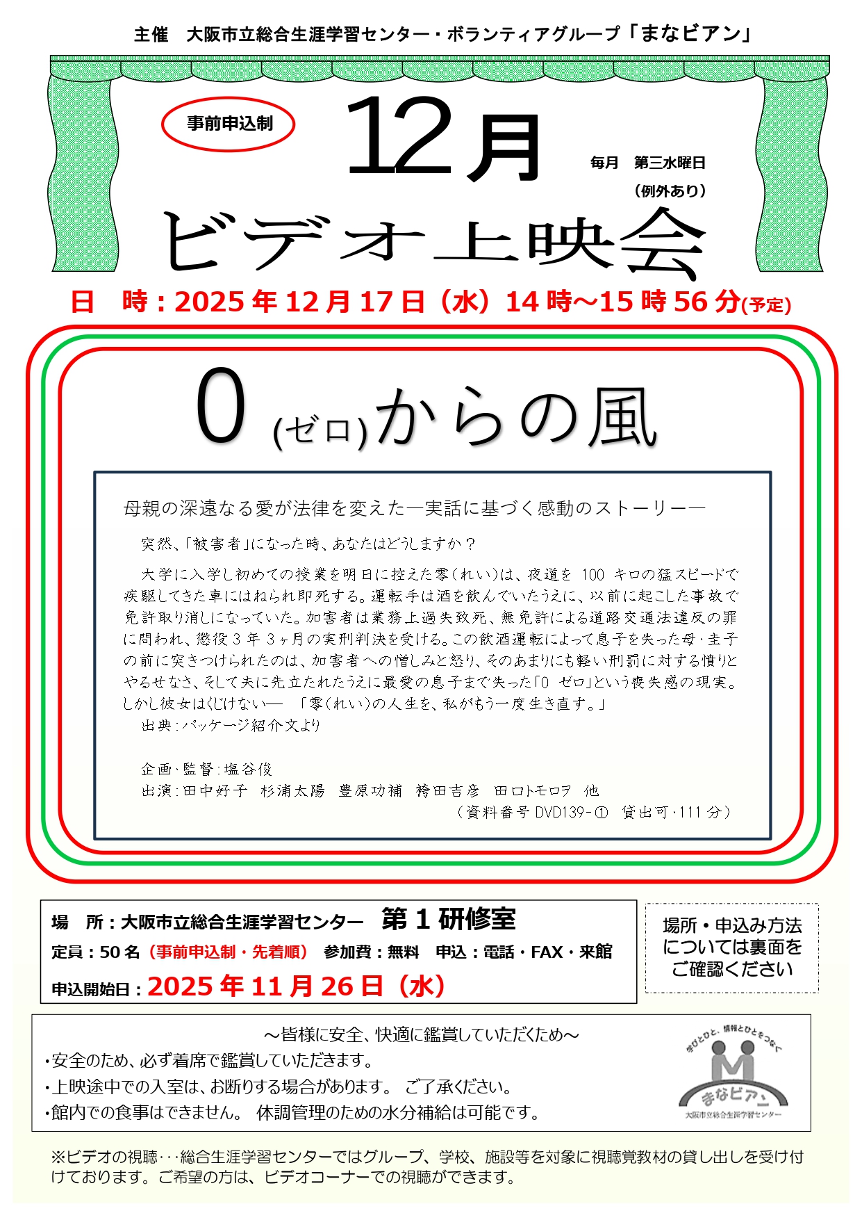 施設ボランティア「まなビアン」が企画した『ビデオ上映会』の12月の月の月の作品です。