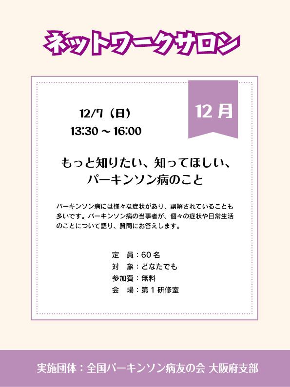 ネットワークサロン「もっと知りたい、知ってほしい、パーキンソン病のこと」