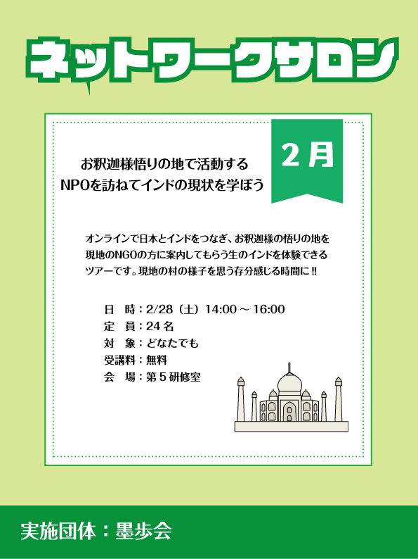 ネットワークサロン「オンラインツアー お釈迦様悟りの地で活動するNPOを訪ねて インドの現状を学...